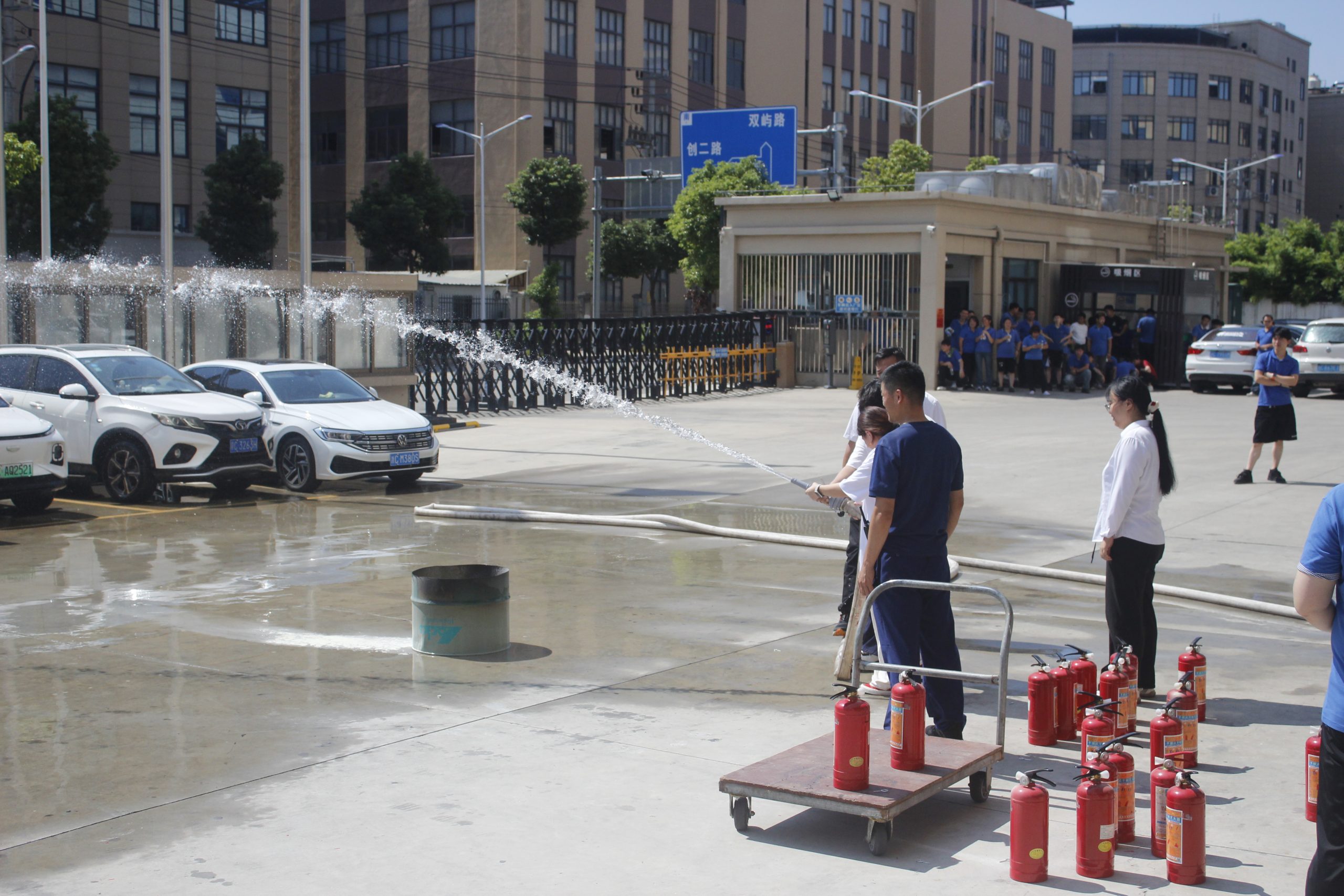 随后,员工们轮流上阵实操,从展开水带、精准对接接口,到握住水枪稳定出水,每一个动作都认真投入。消防员在旁全程观察,及时纠正不规范操作,帮助大家快速掌握消防栓使用技巧。