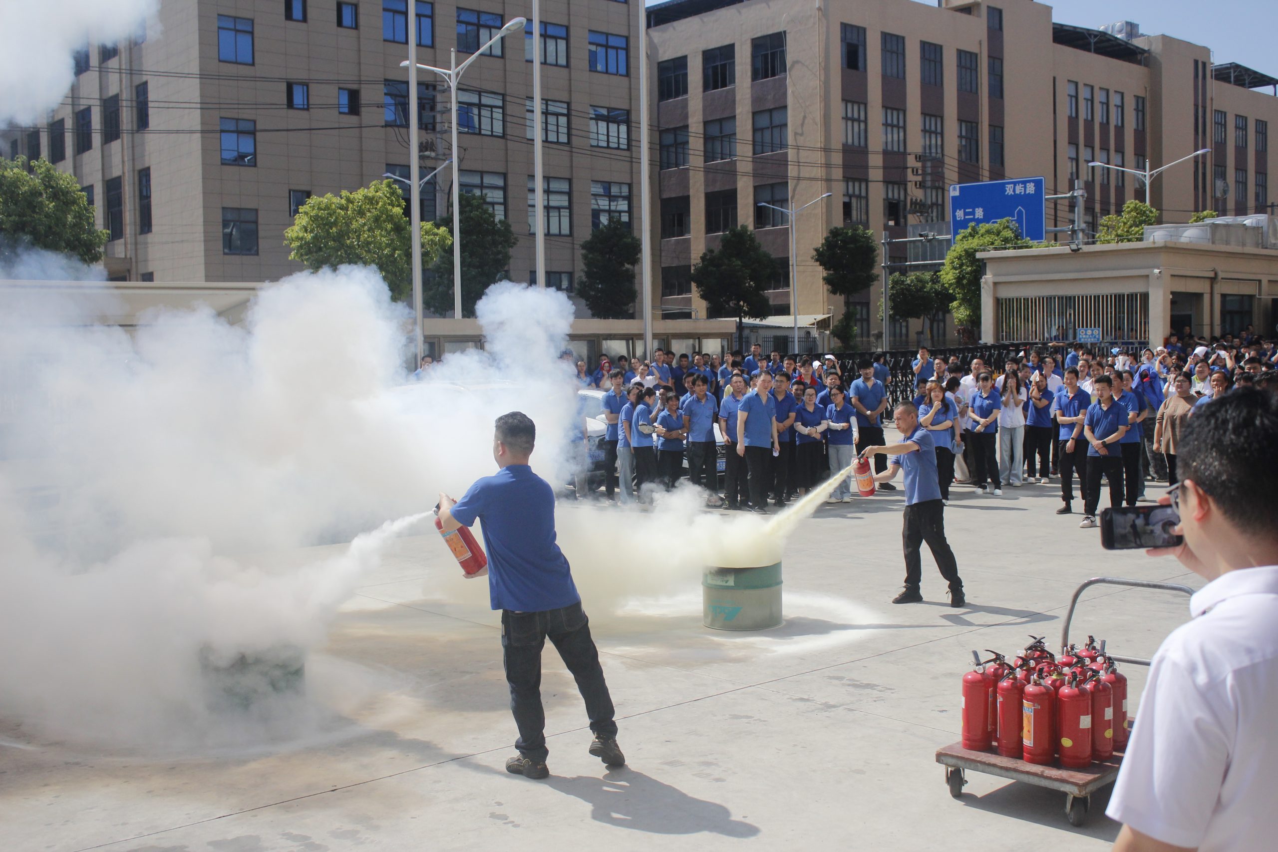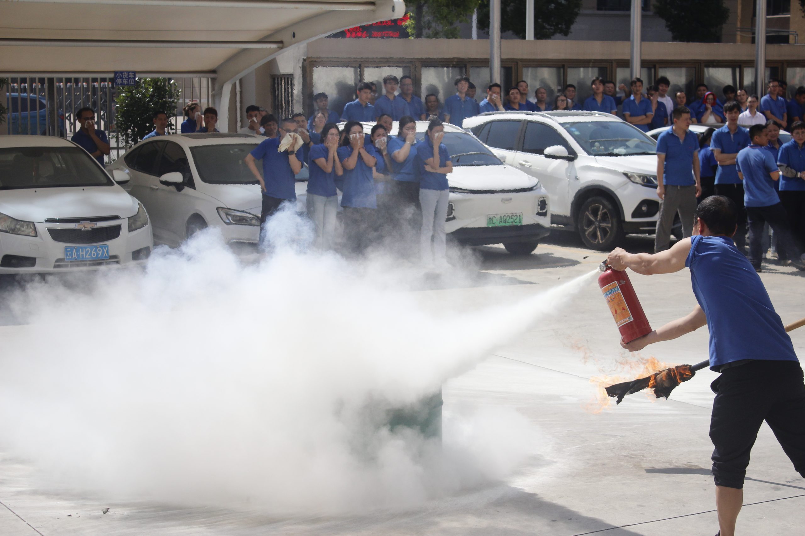 理论讲解结束后,进入灭火器实操环节。在消防员的耐心指导下,员工们分组有序上前,亲身体验灭火器操作,很快便掌握了要领,成功将 “火源” 扑灭。